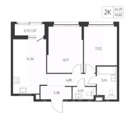 Общая площадь55,83 м²