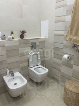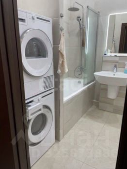 Большой санузел площадью более 7 м² — со стиральной и сушильной машинами, а также тёплым полом. Качественная сантехника от GRОНЕ.
