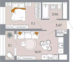 Продаётся 1-комнатная квартира в строящемся доме (Корпус 1), срок сдачи: I-кв. 2029, общей площадью 36.74 кв.м., на 2 этаже.