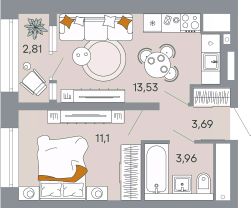 Жилая площадь11,1 м²