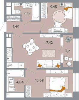 Продаётся 2-комнатная квартира в строящемся доме (Корпус 1), срок сдачи: I-кв. 2029, общей площадью 56.14 кв.м., на 12 этаже.