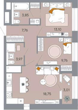 Продаётся 2-комнатная квартира в строящемся доме (Корпус 1), срок сдачи: I-кв. 2029, общей площадью 60.2 кв.м., на 13 этаже.