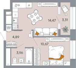 Продаётся 1-комнатная квартира в строящемся доме (Корпус 1), срок сдачи: I-кв. 2029, общей площадью 37.3 кв.м., на 14 этаже.
