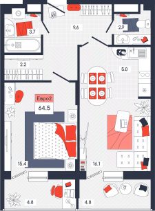 Общая площадь64,5 м²