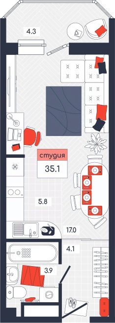 Общая площадь35,1 м²