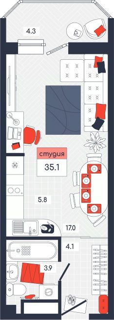 Продаётся студия в строящемся доме (Дом 20), срок сдачи: I-кв. 2026, общей площадью 35.1 кв.м., на 13 этаже. Расположение, транспортная доступность Новый жилой комплекс "Юго-Восточный" строится в Туле, в 3,5 км от центра города. Благодаря удачным транспортным развязкам, автолюбители смогут доехать до центральных кварталов примерно за 5 10 минут, составив наиболее быстрый и удобный маршрут с учетом загруженности дорог. Проблем с мобильностью не возникнет и у пассажиров общественного транспорта. Рядом с домом расположены остановки автобусов и маршрутных такси, которые быстро довезут до любого района города. Так, чтобы добраться до центра, следует дойти пешком до остановки "Медтехника", где останавливается маршрутное такси, доезжающее до центральных кварталов всего за 7 8 минут. Инфраструктура Район, где возводится новый жилой комплекс, активно застраивается, и сеть инфраструктуры сов временем будет расширяться. Но и сейчас все, что нужно для комфортной жизни в городе, находится недалеко от жилого комплекса. В шаговой доступности расположены продуктовые магазины: "Виктория", "Овощи-фрукты", Магазин рыбы и мяса птицы, магазин мяса и колбас "У Максима", супермаркеты "Дикси", "Пятерочка", "SPAR". Неподалеку находится гипермаркет "Линия", крупный торговый центр, в котором расположены отделения банков, гипермаркет "Глобус", салон оптики, мебельный магазин "Столплит", зоомагазин "Четыре лапы" и пр. В соседнем здании находится строительный гипермаркет "Леруа Мерлен", за ним крупный магазин товаров для спорта, туризма и активного отдыха "Декатлон".Недалеко от жилого комплекса открыты кафе и рестораны: кофейня "Bonape", пиццерия "Культура", кафе "Вкуснов", кафе быстрого обслуживания "Rapido", ресторан "У фонтана" и пр.В районе есть аптеки, поликлиники, диагностические центры. В шаговой доступности от жилого комплекса расположено несколько детских садиков, в том числе, садик комбинированного вида "Алые паруса". Есть дошкольные отделения, входящие в состав образовательных центров, Центры развития ребенка. Поблизости расположены средние школы, в том числе, школа для детей с ОВЗ. Рядом с жилым комплексом находится Тульская Духовная Семинария и Суворовское училище. Надежность застройщик: достраивает объект ООО Ин-Групп.АрхитектураЖилой комплекс будет представлен 19 монолитно-кирпичными корпусами переменной этажности, выполненными в едином архитектурном стиле. При строительстве ЖК "Юго-Восточный" применяются современные материалы высокого качества, которые обеспечивают надежность домов и комфортный микроклимат в помещениях. Каждая секция оснащается современными лифтами. Помещения общего пользования отделываются экологичными материалами. Квартиры предлагаются однокомнатные (от 43,9 кв. м), двухкомнатные (от 45,8 кв. м), трехкомнатные (от 60,4 кв. м) и четырехкомнатные (от 87,2 кв. м), а также уютные студии (от 28,9 кв. м).На внутренней территории проводится комплексное благоустройство: озеленение, организация игровых площадок, мест для отдыха и занятий спортом,