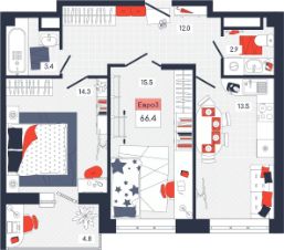 Продаётся 3-комнатная квартира в строящемся доме (Дом 20), срок сдачи: I-кв. 2026, общей площадью 66.4 кв.м., на 13 этаже. Расположение, транспортная доступность Новый жилой комплекс "Юго-Восточный" строится в Туле, в 3,5 км от центра города. Благодаря удачным транспортным развязкам, автолюбители смогут доехать до центральных кварталов примерно за 5 10 минут, составив наиболее быстрый и удобный маршрут с учетом загруженности дорог. Проблем с мобильностью не возникнет и у пассажиров общественного транспорта. Рядом с домом расположены остановки автобусов и маршрутных такси, которые быстро довезут до любого района города. Так, чтобы добраться до центра, следует дойти пешком до остановки "Медтехника", где останавливается маршрутное такси, доезжающее до центральных кварталов всего за 7 8 минут. Инфраструктура Район, где возводится новый жилой комплекс, активно застраивается, и сеть инфраструктуры сов временем будет расширяться. Но и сейчас все, что нужно для комфортной жизни в городе, находится недалеко от жилого комплекса. В шаговой доступности расположены продуктовые магазины: "Виктория", "Овощи-фрукты", Магазин рыбы и мяса птицы, магазин мяса и колбас "У Максима", супермаркеты "Дикси", "Пятерочка", "SPAR". Неподалеку находится гипермаркет "Линия", крупный торговый центр, в котором расположены отделения банков, гипермаркет "Глобус", салон оптики, мебельный магазин "Столплит", зоомагазин "Четыре лапы" и пр. В соседнем здании находится строительный гипермаркет "Леруа Мерлен", за ним крупный магазин товаров для спорта, туризма и активного отдыха "Декатлон".Недалеко от жилого комплекса открыты кафе и рестораны: кофейня "Bonape", пиццерия "Культура", кафе "Вкуснов", кафе быстрого обслуживания "Rapido", ресторан "У фонтана" и пр.В районе есть аптеки, поликлиники, диагностические центры. В шаговой доступности от жилого комплекса расположено несколько детских садиков, в том числе, садик комбинированного вида "Алые паруса". Есть дошкольные отделения, входящие в состав образовательных центров, Центры развития ребенка. Поблизости расположены средние школы, в том числе, школа для детей с ОВЗ. Рядом с жилым комплексом находится Тульская Духовная Семинария и Суворовское училище. Надежность застройщик: достраивает объект ООО Ин-Групп.АрхитектураЖилой комплекс будет представлен 19 монолитно-кирпичными корпусами переменной этажности, выполненными в едином архитектурном стиле. При строительстве ЖК "Юго-Восточный" применяются современные материалы высокого качества, которые обеспечивают надежность домов и комфортный микроклимат в помещениях. Каждая секция оснащается современными лифтами. Помещения общего пользования отделываются экологичными материалами. Квартиры предлагаются однокомнатные (от 43,9 кв. м), двухкомнатные (от 45,8 кв. м), трехкомнатные (от 60,4 кв. м) и четырехкомнатные (от 87,2 кв. м), а также уютные студии (от 28,9 кв. м).На внутренней территории проводится комплексное благоустройство: озеленение, организация игровых площадок, мест для отдыха и зан