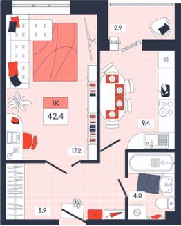Продаётся 1-комнатная квартира в строящемся доме (Дом 20), срок сдачи: I-кв. 2026, общей площадью 42.4 кв.м., на 2 этаже. Расположение, транспортная доступность Новый жилой комплекс "Юго-Восточный" строится в Туле, в 3,5 км от центра города. Благодаря удачным транспортным развязкам, автолюбители смогут доехать до центральных кварталов примерно за 5 10 минут, составив наиболее быстрый и удобный маршрут с учетом загруженности дорог. Проблем с мобильностью не возникнет и у пассажиров общественного транспорта. Рядом с домом расположены остановки автобусов и маршрутных такси, которые быстро довезут до любого района города. Так, чтобы добраться до центра, следует дойти пешком до остановки "Медтехника", где останавливается маршрутное такси, доезжающее до центральных кварталов всего за 7 8 минут. Инфраструктура Район, где возводится новый жилой комплекс, активно застраивается, и сеть инфраструктуры сов временем будет расширяться. Но и сейчас все, что нужно для комфортной жизни в городе, находится недалеко от жилого комплекса. В шаговой доступности расположены продуктовые магазины: "Виктория", "Овощи-фрукты", Магазин рыбы и мяса птицы, магазин мяса и колбас "У Максима", супермаркеты "Дикси", "Пятерочка", "SPAR". Неподалеку находится гипермаркет "Линия", крупный торговый центр, в котором расположены отделения банков, гипермаркет "Глобус", салон оптики, мебельный магазин "Столплит", зоомагазин "Четыре лапы" и пр. В соседнем здании находится строительный гипермаркет "Леруа Мерлен", за ним крупный магазин товаров для спорта, туризма и активного отдыха "Декатлон".Недалеко от жилого комплекса открыты кафе и рестораны: кофейня "Bonape", пиццерия "Культура", кафе "Вкуснов", кафе быстрого обслуживания "Rapido", ресторан "У фонтана" и пр.В районе есть аптеки, поликлиники, диагностические центры. В шаговой доступности от жилого комплекса расположено несколько детских садиков, в том числе, садик комбинированного вида "Алые паруса". Есть дошкольные отделения, входящие в состав образовательных центров, Центры развития ребенка. Поблизости расположены средние школы, в том числе, школа для детей с ОВЗ. Рядом с жилым комплексом находится Тульская Духовная Семинария и Суворовское училище. Надежность застройщик: достраивает объект ООО Ин-Групп.АрхитектураЖилой комплекс будет представлен 19 монолитно-кирпичными корпусами переменной этажности, выполненными в едином архитектурном стиле. При строительстве ЖК "Юго-Восточный" применяются современные материалы высокого качества, которые обеспечивают надежность домов и комфортный микроклимат в помещениях. Каждая секция оснащается современными лифтами. Помещения общего пользования отделываются экологичными материалами. Квартиры предлагаются однокомнатные (от 43,9 кв. м), двухкомнатные (от 45,8 кв. м), трехкомнатные (от 60,4 кв. м) и четырехкомнатные (от 87,2 кв. м), а также уютные студии (от 28,9 кв. м).На внутренней территории проводится комплексное благоустройство: озеленение, организация игровых площадок, мест для отдыха и заня