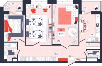 Продаётся 3-комнатная квартира в строящемся доме (Дом 20), срок сдачи: I-кв. 2026, общей площадью 84.4 кв.м., на 13 этаже. Расположение, транспортная доступность Новый жилой комплекс "Юго-Восточный" строится в Туле, в 3,5 км от центра города. Благодаря удачным транспортным развязкам, автолюбители смогут доехать до центральных кварталов примерно за 5 10 минут, составив наиболее быстрый и удобный маршрут с учетом загруженности дорог. Проблем с мобильностью не возникнет и у пассажиров общественного транспорта. Рядом с домом расположены остановки автобусов и маршрутных такси, которые быстро довезут до любого района города. Так, чтобы добраться до центра, следует дойти пешком до остановки "Медтехника", где останавливается маршрутное такси, доезжающее до центральных кварталов всего за 7 8 минут. Инфраструктура Район, где возводится новый жилой комплекс, активно застраивается, и сеть инфраструктуры сов временем будет расширяться. Но и сейчас все, что нужно для комфортной жизни в городе, находится недалеко от жилого комплекса. В шаговой доступности расположены продуктовые магазины: "Виктория", "Овощи-фрукты", Магазин рыбы и мяса птицы, магазин мяса и колбас "У Максима", супермаркеты "Дикси", "Пятерочка", "SPAR". Неподалеку находится гипермаркет "Линия", крупный торговый центр, в котором расположены отделения банков, гипермаркет "Глобус", салон оптики, мебельный магазин "Столплит", зоомагазин "Четыре лапы" и пр. В соседнем здании находится строительный гипермаркет "Леруа Мерлен", за ним крупный магазин товаров для спорта, туризма и активного отдыха "Декатлон".Недалеко от жилого комплекса открыты кафе и рестораны: кофейня "Bonape", пиццерия "Культура", кафе "Вкуснов", кафе быстрого обслуживания "Rapido", ресторан "У фонтана" и пр.В районе есть аптеки, поликлиники, диагностические центры. В шаговой доступности от жилого комплекса расположено несколько детских садиков, в том числе, садик комбинированного вида "Алые паруса". Есть дошкольные отделения, входящие в состав образовательных центров, Центры развития ребенка. Поблизости расположены средние школы, в том числе, школа для детей с ОВЗ. Рядом с жилым комплексом находится Тульская Духовная Семинария и Суворовское училище. Надежность застройщик: достраивает объект ООО Ин-Групп.АрхитектураЖилой комплекс будет представлен 19 монолитно-кирпичными корпусами переменной этажности, выполненными в едином архитектурном стиле. При строительстве ЖК "Юго-Восточный" применяются современные материалы высокого качества, которые обеспечивают надежность домов и комфортный микроклимат в помещениях. Каждая секция оснащается современными лифтами. Помещения общего пользования отделываются экологичными материалами. Квартиры предлагаются однокомнатные (от 43,9 кв. м), двухкомнатные (от 45,8 кв. м), трехкомнатные (от 60,4 кв. м) и четырехкомнатные (от 87,2 кв. м), а также уютные студии (от 28,9 кв. м).На внутренней территории проводится комплексное благоустройство: озеленение, организация игровых площадок, мест для отдыха и зан