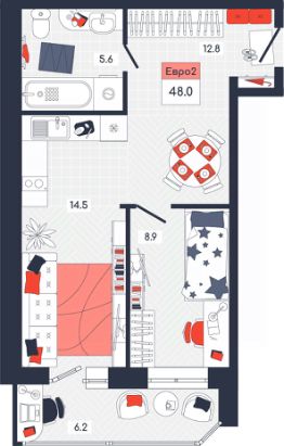 Продаётся 2-комнатная квартира в строящемся доме (Дом 20), срок сдачи: I-кв. 2026, общей площадью 48 кв.м., на 2 этаже. Расположение, транспортная доступность Новый жилой комплекс "Юго-Восточный" строится в Туле, в 3,5 км от центра города. Благодаря удачным транспортным развязкам, автолюбители смогут доехать до центральных кварталов примерно за 5 10 минут, составив наиболее быстрый и удобный маршрут с учетом загруженности дорог. Проблем с мобильностью не возникнет и у пассажиров общественного транспорта. Рядом с домом расположены остановки автобусов и маршрутных такси, которые быстро довезут до любого района города. Так, чтобы добраться до центра, следует дойти пешком до остановки "Медтехника", где останавливается маршрутное такси, доезжающее до центральных кварталов всего за 7 8 минут. Инфраструктура Район, где возводится новый жилой комплекс, активно застраивается, и сеть инфраструктуры сов временем будет расширяться. Но и сейчас все, что нужно для комфортной жизни в городе, находится недалеко от жилого комплекса. В шаговой доступности расположены продуктовые магазины: "Виктория", "Овощи-фрукты", Магазин рыбы и мяса птицы, магазин мяса и колбас "У Максима", супермаркеты "Дикси", "Пятерочка", "SPAR". Неподалеку находится гипермаркет "Линия", крупный торговый центр, в котором расположены отделения банков, гипермаркет "Глобус", салон оптики, мебельный магазин "Столплит", зоомагазин "Четыре лапы" и пр. В соседнем здании находится строительный гипермаркет "Леруа Мерлен", за ним крупный магазин товаров для спорта, туризма и активного отдыха "Декатлон".Недалеко от жилого комплекса открыты кафе и рестораны: кофейня "Bonape", пиццерия "Культура", кафе "Вкуснов", кафе быстрого обслуживания "Rapido", ресторан "У фонтана" и пр.В районе есть аптеки, поликлиники, диагностические центры. В шаговой доступности от жилого комплекса расположено несколько детских садиков, в том числе, садик комбинированного вида "Алые паруса". Есть дошкольные отделения, входящие в состав образовательных центров, Центры развития ребенка. Поблизости расположены средние школы, в том числе, школа для детей с ОВЗ. Рядом с жилым комплексом находится Тульская Духовная Семинария и Суворовское училище. Надежность застройщик: достраивает объект ООО Ин-Групп.АрхитектураЖилой комплекс будет представлен 19 монолитно-кирпичными корпусами переменной этажности, выполненными в едином архитектурном стиле. При строительстве ЖК "Юго-Восточный" применяются современные материалы высокого качества, которые обеспечивают надежность домов и комфортный микроклимат в помещениях. Каждая секция оснащается современными лифтами. Помещения общего пользования отделываются экологичными материалами. Квартиры предлагаются однокомнатные (от 43,9 кв. м), двухкомнатные (от 45,8 кв. м), трехкомнатные (от 60,4 кв. м) и четырехкомнатные (от 87,2 кв. м), а также уютные студии (от 28,9 кв. м).На внутренней территории проводится комплексное благоустройство: озеленение, организация игровых площадок, мест для отдыха и заняти