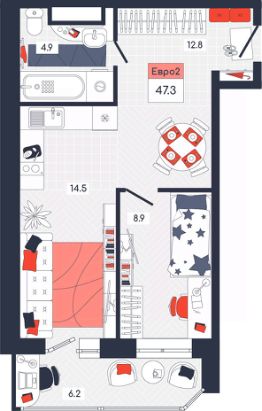 Продаётся 2-комнатная квартира в строящемся доме (Дом 20), срок сдачи: I-кв. 2026, общей площадью 47.3 кв.м., на 11 этаже. Расположение, транспортная доступность Новый жилой комплекс "Юго-Восточный" строится в Туле, в 3,5 км от центра города. Благодаря удачным транспортным развязкам, автолюбители смогут доехать до центральных кварталов примерно за 5 10 минут, составив наиболее быстрый и удобный маршрут с учетом загруженности дорог. Проблем с мобильностью не возникнет и у пассажиров общественного транспорта. Рядом с домом расположены остановки автобусов и маршрутных такси, которые быстро довезут до любого района города. Так, чтобы добраться до центра, следует дойти пешком до остановки "Медтехника", где останавливается маршрутное такси, доезжающее до центральных кварталов всего за 7 8 минут. Инфраструктура Район, где возводится новый жилой комплекс, активно застраивается, и сеть инфраструктуры сов временем будет расширяться. Но и сейчас все, что нужно для комфортной жизни в городе, находится недалеко от жилого комплекса. В шаговой доступности расположены продуктовые магазины: "Виктория", "Овощи-фрукты", Магазин рыбы и мяса птицы, магазин мяса и колбас "У Максима", супермаркеты "Дикси", "Пятерочка", "SPAR". Неподалеку находится гипермаркет "Линия", крупный торговый центр, в котором расположены отделения банков, гипермаркет "Глобус", салон оптики, мебельный магазин "Столплит", зоомагазин "Четыре лапы" и пр. В соседнем здании находится строительный гипермаркет "Леруа Мерлен", за ним крупный магазин товаров для спорта, туризма и активного отдыха "Декатлон".Недалеко от жилого комплекса открыты кафе и рестораны: кофейня "Bonape", пиццерия "Культура", кафе "Вкуснов", кафе быстрого обслуживания "Rapido", ресторан "У фонтана" и пр.В районе есть аптеки, поликлиники, диагностические центры. В шаговой доступности от жилого комплекса расположено несколько детских садиков, в том числе, садик комбинированного вида "Алые паруса". Есть дошкольные отделения, входящие в состав образовательных центров, Центры развития ребенка. Поблизости расположены средние школы, в том числе, школа для детей с ОВЗ. Рядом с жилым комплексом находится Тульская Духовная Семинария и Суворовское училище. Надежность застройщик: достраивает объект ООО Ин-Групп.АрхитектураЖилой комплекс будет представлен 19 монолитно-кирпичными корпусами переменной этажности, выполненными в едином архитектурном стиле. При строительстве ЖК "Юго-Восточный" применяются современные материалы высокого качества, которые обеспечивают надежность домов и комфортный микроклимат в помещениях. Каждая секция оснащается современными лифтами. Помещения общего пользования отделываются экологичными материалами. Квартиры предлагаются однокомнатные (от 43,9 кв. м), двухкомнатные (от 45,8 кв. м), трехкомнатные (от 60,4 кв. м) и четырехкомнатные (от 87,2 кв. м), а также уютные студии (от 28,9 кв. м).На внутренней территории проводится комплексное благоустройство: озеленение, организация игровых площадок, мест для отдыха и зан