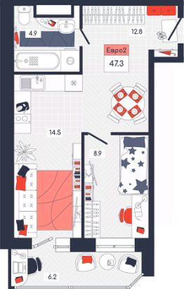 Продаётся 2-комнатная квартира в строящемся доме (Дом 20), срок сдачи: I-кв. 2026, общей площадью 47.3 кв.м., на 14 этаже. Расположение, транспортная доступность Новый жилой комплекс "Юго-Восточный" строится в Туле, в 3,5 км от центра города. Благодаря удачным транспортным развязкам, автолюбители смогут доехать до центральных кварталов примерно за 5 10 минут, составив наиболее быстрый и удобный маршрут с учетом загруженности дорог. Проблем с мобильностью не возникнет и у пассажиров общественного транспорта. Рядом с домом расположены остановки автобусов и маршрутных такси, которые быстро довезут до любого района города. Так, чтобы добраться до центра, следует дойти пешком до остановки "Медтехника", где останавливается маршрутное такси, доезжающее до центральных кварталов всего за 7 8 минут. Инфраструктура Район, где возводится новый жилой комплекс, активно застраивается, и сеть инфраструктуры сов временем будет расширяться. Но и сейчас все, что нужно для комфортной жизни в городе, находится недалеко от жилого комплекса. В шаговой доступности расположены продуктовые магазины: "Виктория", "Овощи-фрукты", Магазин рыбы и мяса птицы, магазин мяса и колбас "У Максима", супермаркеты "Дикси", "Пятерочка", "SPAR". Неподалеку находится гипермаркет "Линия", крупный торговый центр, в котором расположены отделения банков, гипермаркет "Глобус", салон оптики, мебельный магазин "Столплит", зоомагазин "Четыре лапы" и пр. В соседнем здании находится строительный гипермаркет "Леруа Мерлен", за ним крупный магазин товаров для спорта, туризма и активного отдыха "Декатлон".Недалеко от жилого комплекса открыты кафе и рестораны: кофейня "Bonape", пиццерия "Культура", кафе "Вкуснов", кафе быстрого обслуживания "Rapido", ресторан "У фонтана" и пр.В районе есть аптеки, поликлиники, диагностические центры. В шаговой доступности от жилого комплекса расположено несколько детских садиков, в том числе, садик комбинированного вида "Алые паруса". Есть дошкольные отделения, входящие в состав образовательных центров, Центры развития ребенка. Поблизости расположены средние школы, в том числе, школа для детей с ОВЗ. Рядом с жилым комплексом находится Тульская Духовная Семинария и Суворовское училище. Надежность застройщик: достраивает объект ООО Ин-Групп.АрхитектураЖилой комплекс будет представлен 19 монолитно-кирпичными корпусами переменной этажности, выполненными в едином архитектурном стиле. При строительстве ЖК "Юго-Восточный" применяются современные материалы высокого качества, которые обеспечивают надежность домов и комфортный микроклимат в помещениях. Каждая секция оснащается современными лифтами. Помещения общего пользования отделываются экологичными материалами. Квартиры предлагаются однокомнатные (от 43,9 кв. м), двухкомнатные (от 45,8 кв. м), трехкомнатные (от 60,4 кв. м) и четырехкомнатные (от 87,2 кв. м), а также уютные студии (от 28,9 кв. м).На внутренней территории проводится комплексное благоустройство: озеленение, организация игровых площадок, мест для отдыха и зан