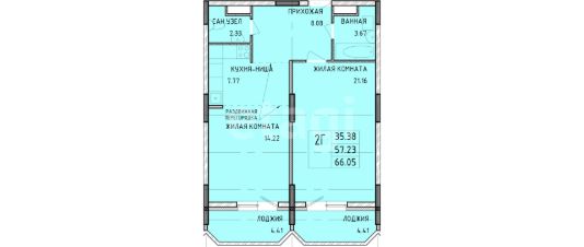 67 м²: 57 м² квартира + 2 лоджии по 5 м²