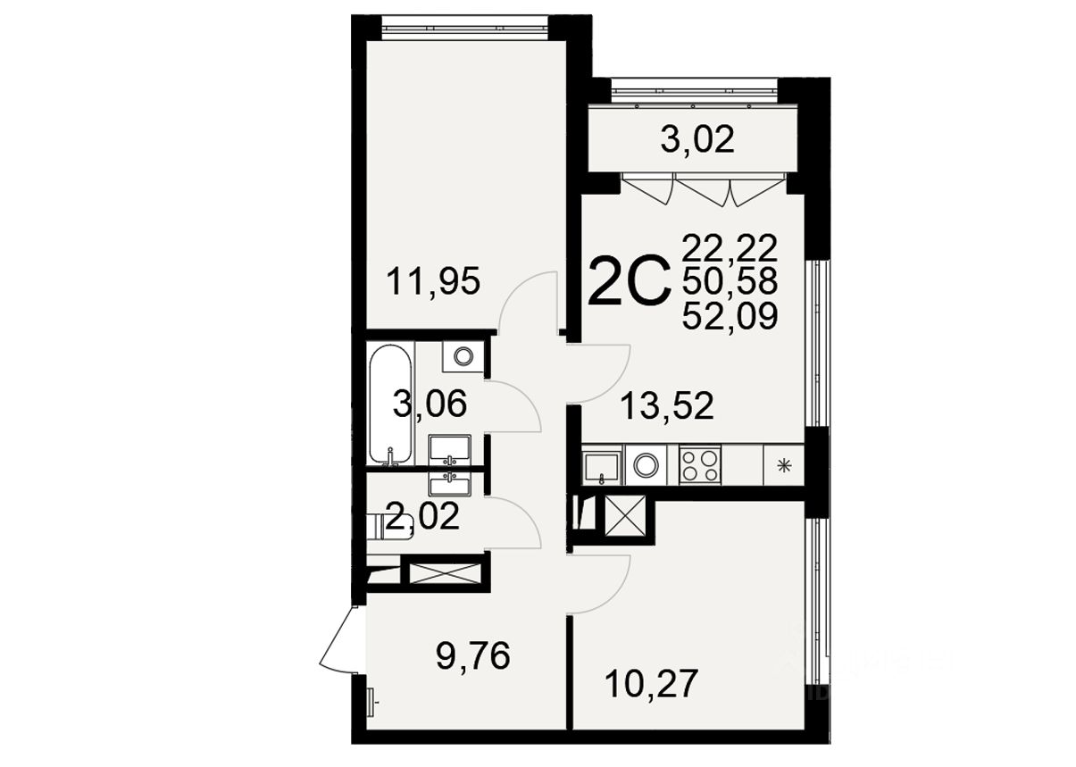 Продается 2-комн. квартира, 52,09 м²