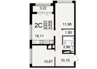 Продается 2-комн. квартира, 56,43 м²