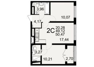 Общая площадь50,47 м²