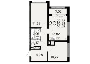 Продается 2-комн. квартира, 52,09 м²