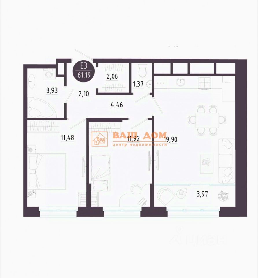 Арт. 111922792 Продается ОТ ЗАСТРОЙЩИКА просторная 2 ух. комнатная (ЕВРО 3) 61,19 кв м дом "Мятный" в ЖК "Пряничная Слобода". Дом СДАЕТЬСЯ сейчас.