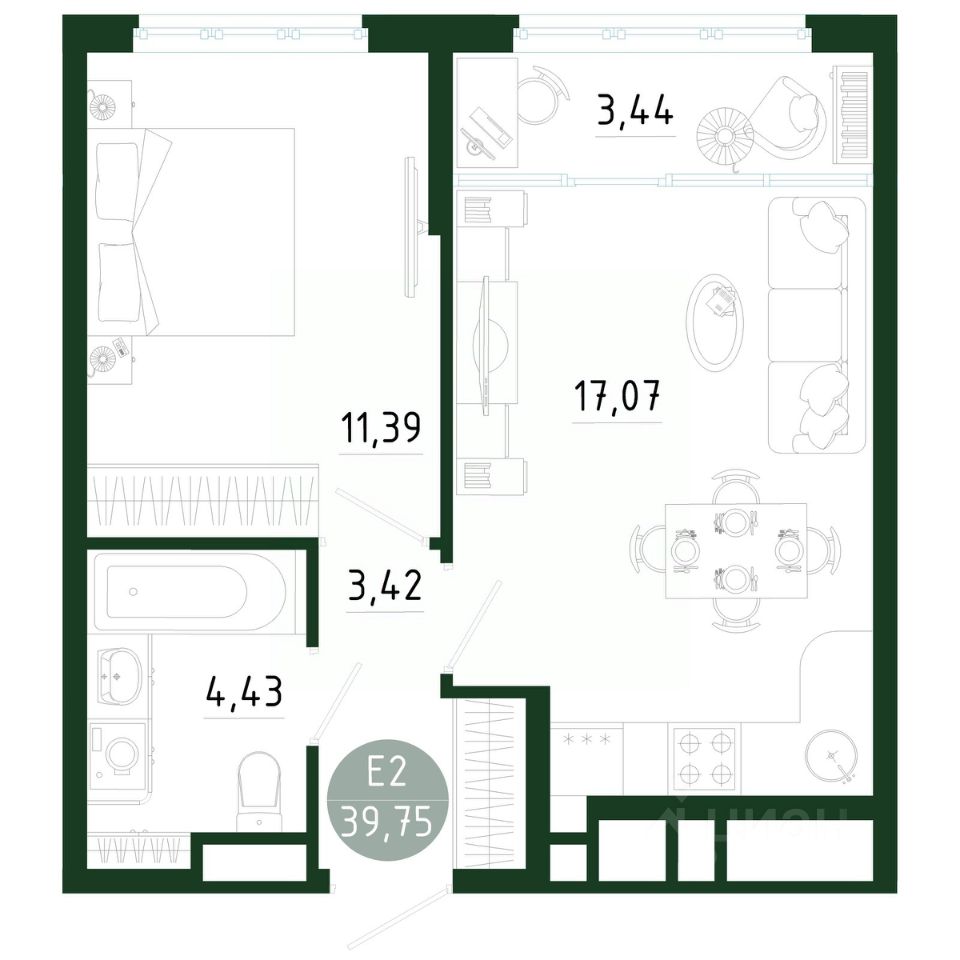 Продаётся 1-комнатная квартира в строящемся доме (Позиция 2), срок сдачи: III-кв. 2029, общей площадью 39.75 кв.м., на 17 этаже. Новый жилой комплекс в г. Тула "Платон Парк" от застройщика ООО "СЗ "МОНОЛИТ""