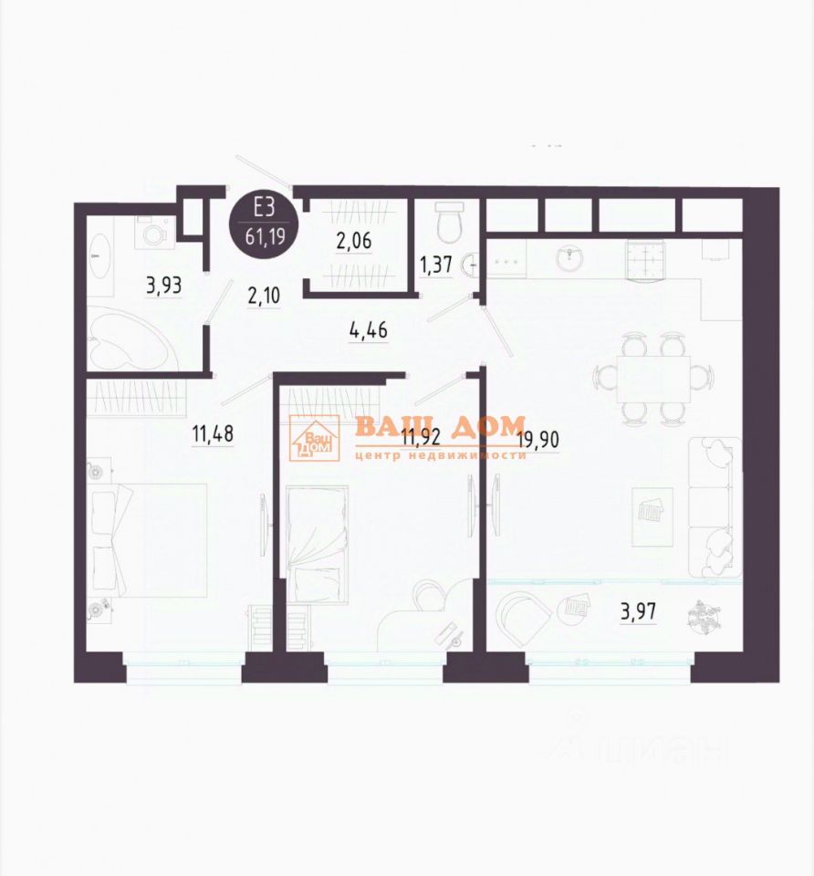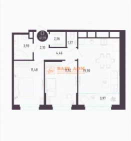 Арт. 111922744 Продается от застройщика ЕВРО 3; 61,19 кв м дом "мятный" в ЖК "Пряничная Слобода".