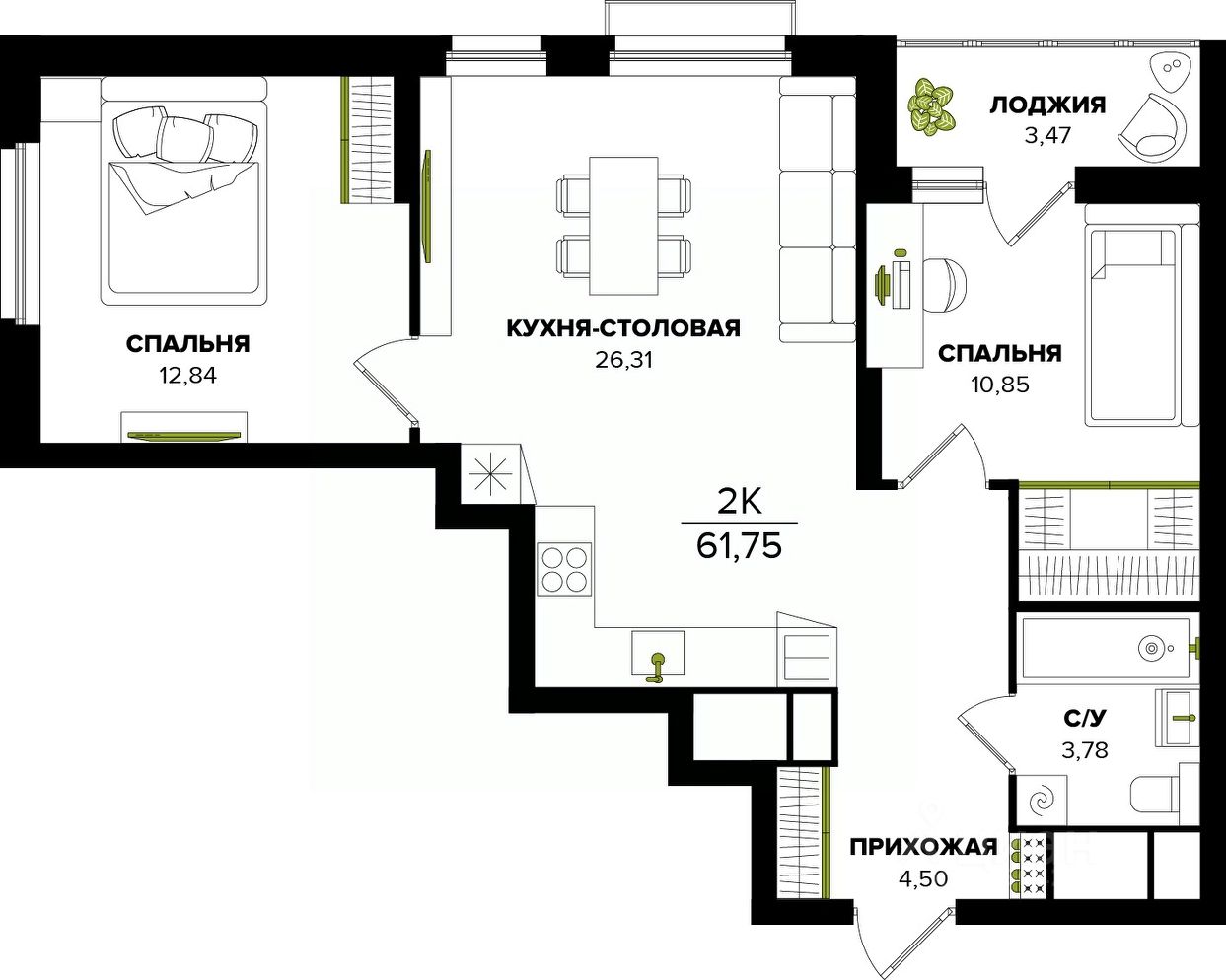61,75 м²