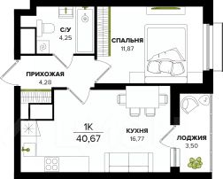 Общая площадь40,67 м²