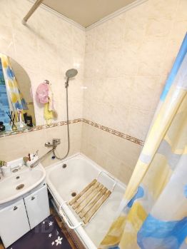 При входе достаточно просторный коридор, слева раздельный санузел, туалет обшит пластиковыми панелями, ванна полностью выложена плиткой, все коммуникации в рабочем состоянии.