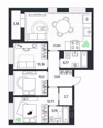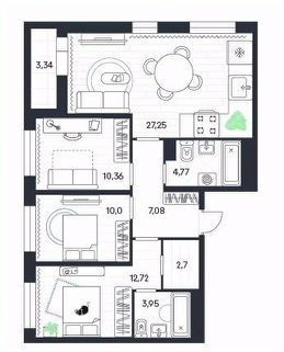 Продаётся 3-комнатная квартира в строящемся доме (4-я очередь), срок сдачи: III-кв. 2026, общей площадью 82.17 кв.м., на 12 этаже. Новый жилой дом от застройщика "ГК Стройальянс" расположен по адресу: Тульская область, Ленинский район, п. Петровский, Одоевское шоссе
