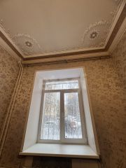 Просторная 2-ка с раздельными комнатами. Высокий 1 этаж, большие окна. Высота потолков 3,4 м. Благодаря толстым стенам- полная изоляция от шума- вы действительно не слышите соседей. На фото видна толщина стен.