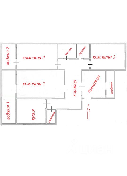 - Две лоджии (одна большая - 6 м. из зала, и 1.8 м. - из комнаты).
