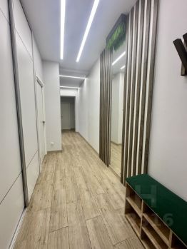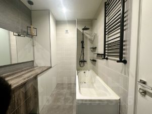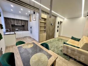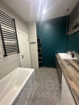 Кухня оборудована современной техникой, включая холодильник и стиральную машину. Встроенные шкафы обеспечивают достаточное пространство для хранения. Ванная комната и туалет раздельные, оформлены в современном стиле с качественной сантехникой.