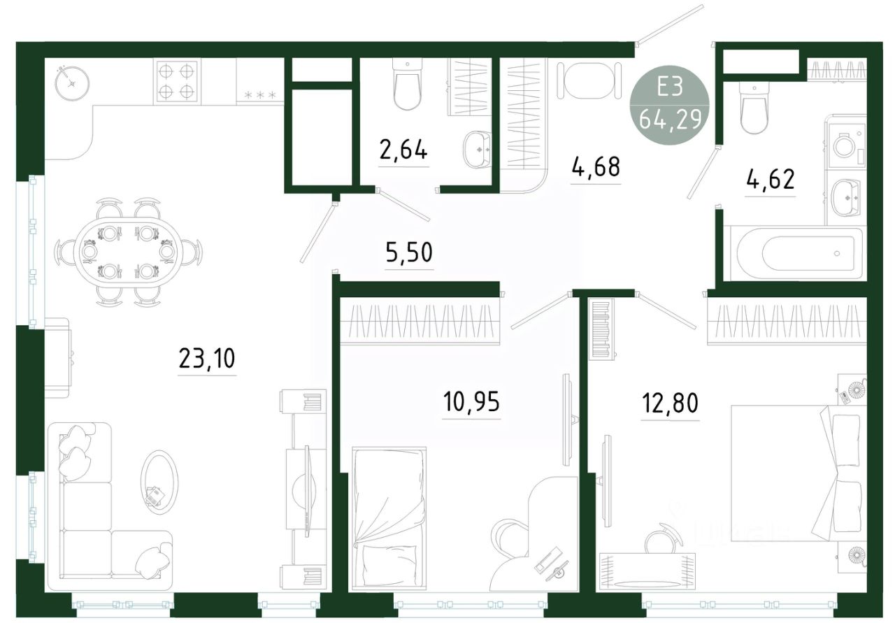 64,29 м²