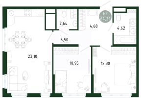 Продаётся 2-комнатная квартира в строящемся доме (Позиция 1), срок сдачи: III-кв. 2029, общей площадью 64.29 кв.м., на 18 этаже. Новый жилой комплекс в г. Тула "Платон Парк" от застройщика ООО "СЗ "МОНОЛИТ""