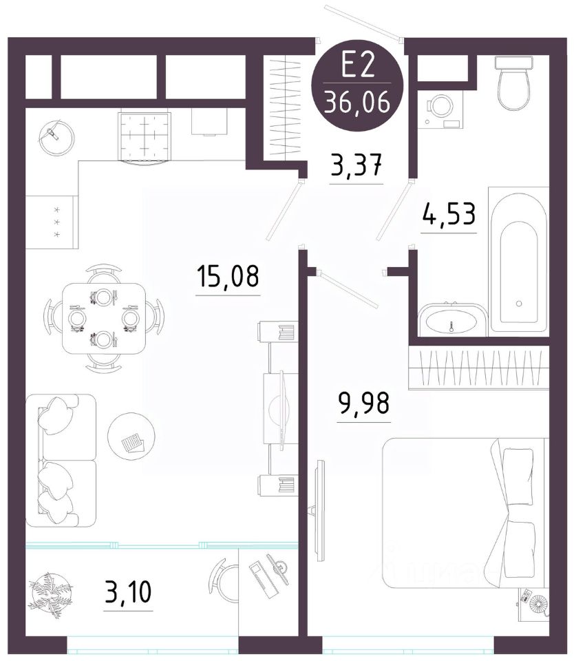 Общая площадь36,06 м²
