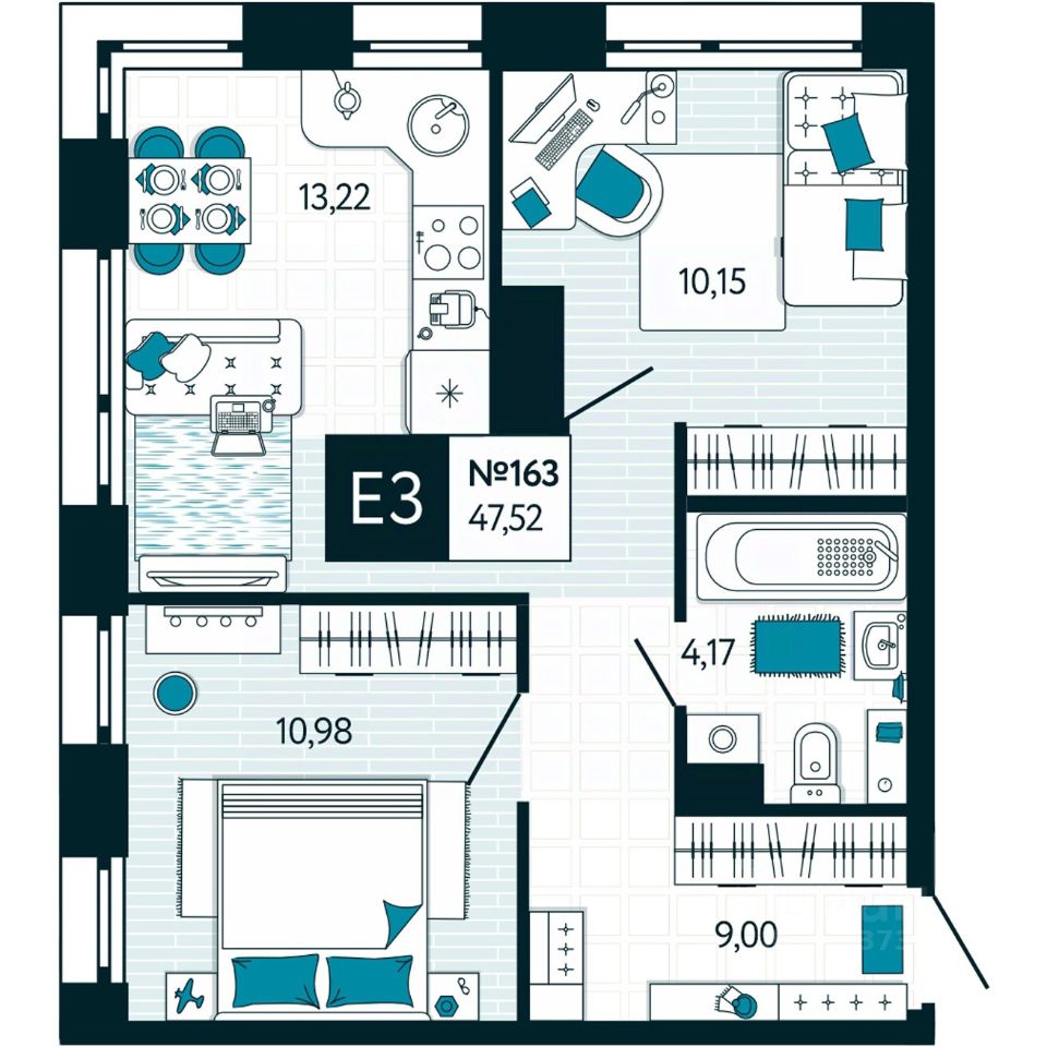 Общая площадь47,52 м²