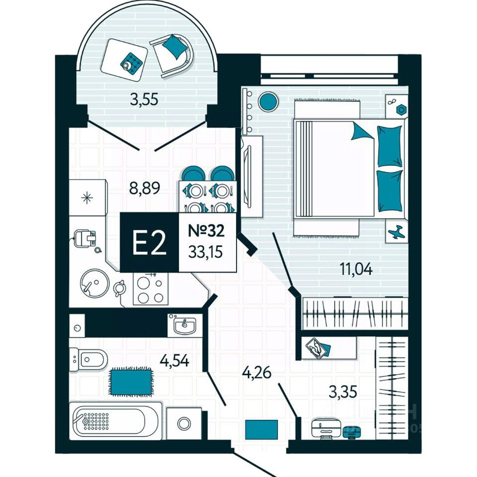 Общая площадь33,15 м²