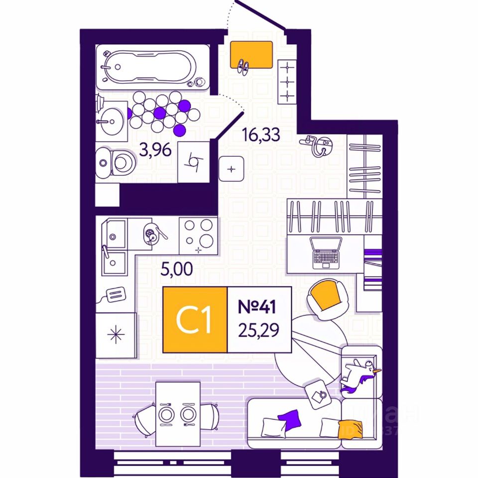 Общая площадь25,29 м²