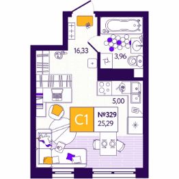 Общая площадь25,29 м²