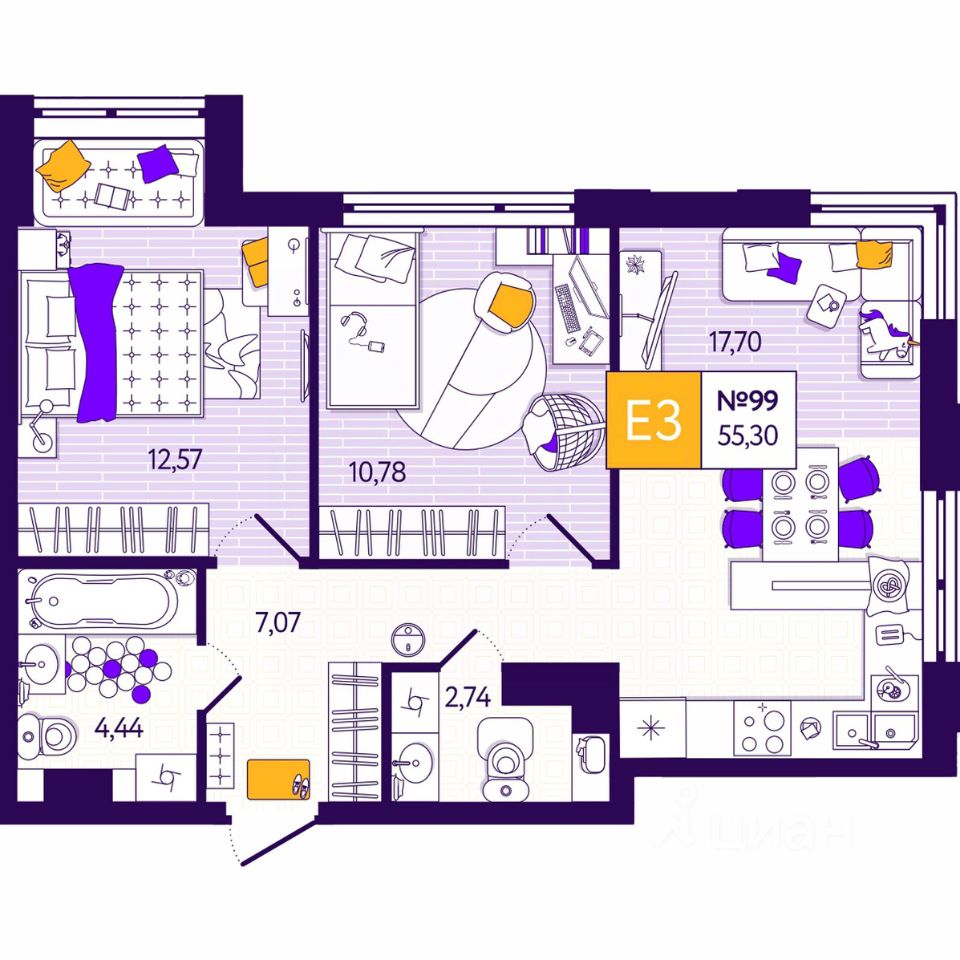 Общая площадь55,3 м²