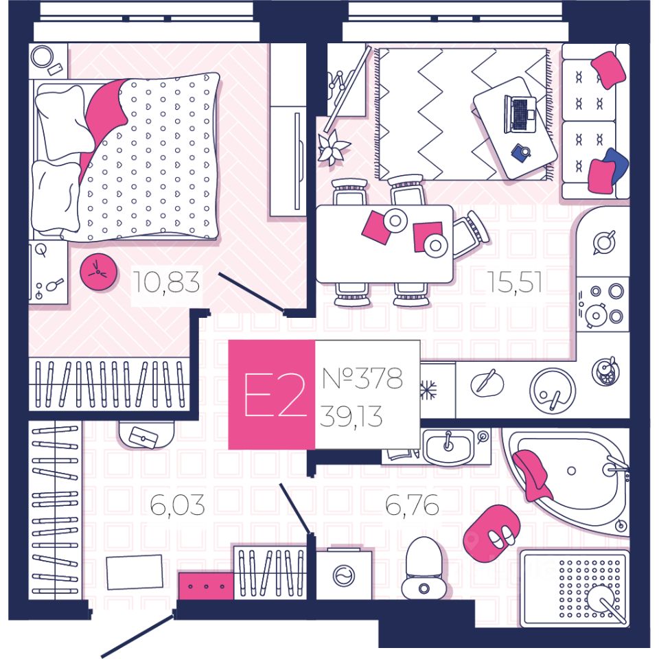 Общая площадь39,13 м²