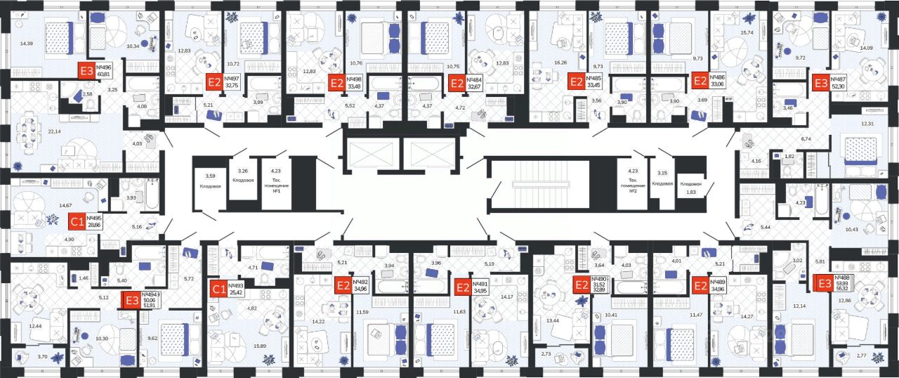 - Лифтовые холлы с понятной навигацией, 2 скоростных лифта
