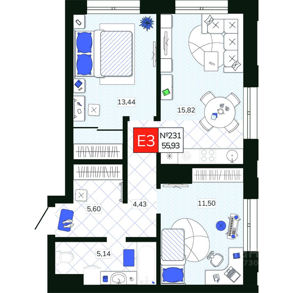 Общая площадь55,93 м²