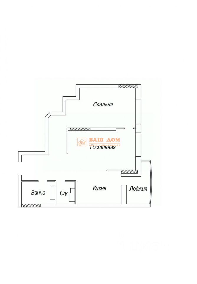 Продуманная планировка с раздельным с/у и большой гардеробной, просторная кухня-гостиная с лоджией и отдельная спальня.