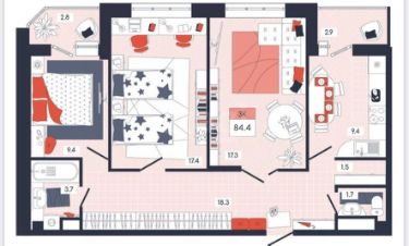 и два санузла — чтобы эта жизнь не пересекалась в утренние часы.