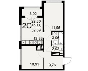 Продаётся 2-комнатная квартира в строящемся доме (Дом 1 (секция 1 и 2) - этап 1), срок сдачи: IV-кв. 2026, общей площадью 50.58 кв.м., на 24 этаже.