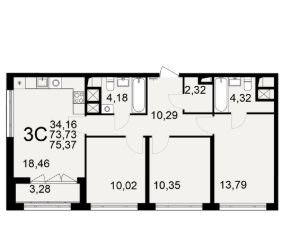 73,73 м²