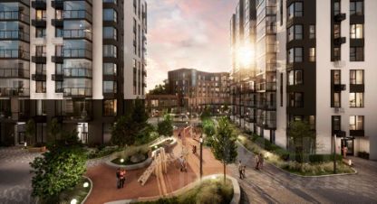 На территории есть общественные пространства и места для тихого отдыха, кафе, фермерские лавки, аллея художников и музыкальный павильон. Общественные пространства в каждой секции уникальны и продолжают единый архитектурный замысел проекта. Концептуальный дизайн-интерьер совмещает функциональность и эстетику, подчеркивая прогрессивность и гармоничность жителей.