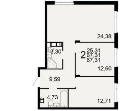 Продаётся 2-комнатная квартира в строящемся доме (Самоварная, 1А (поз.1)), срок сдачи: III-кв. 2026, общей площадью 67.31 кв.м., на 2 этаже.
