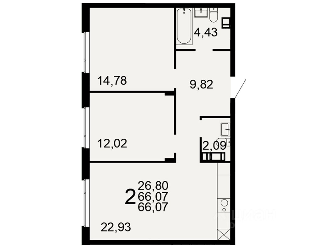 Общая площадь66,07 м²