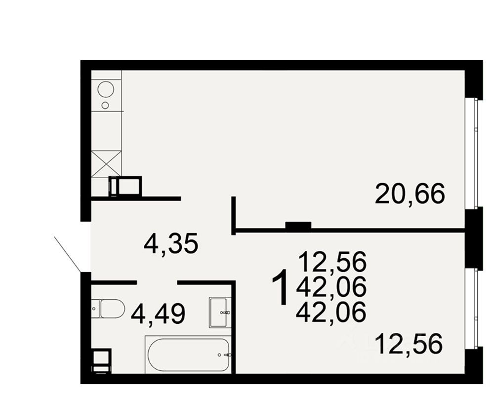 Общая площадь42,06 м²